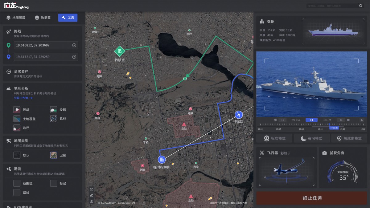 The system connects people, devices, environments, events and other factors scattered in the geographical space in real time to form a battlefield situation map. Then, it gives smooth routes for the dispatch of mission resources based on the needs and the situation. It can also intelligently simulate confrontations to inform commanders’ decisions in the battlefield, including effective path selection, force formation and task allocation, thus guiding military operations in complex battlefield environments.
